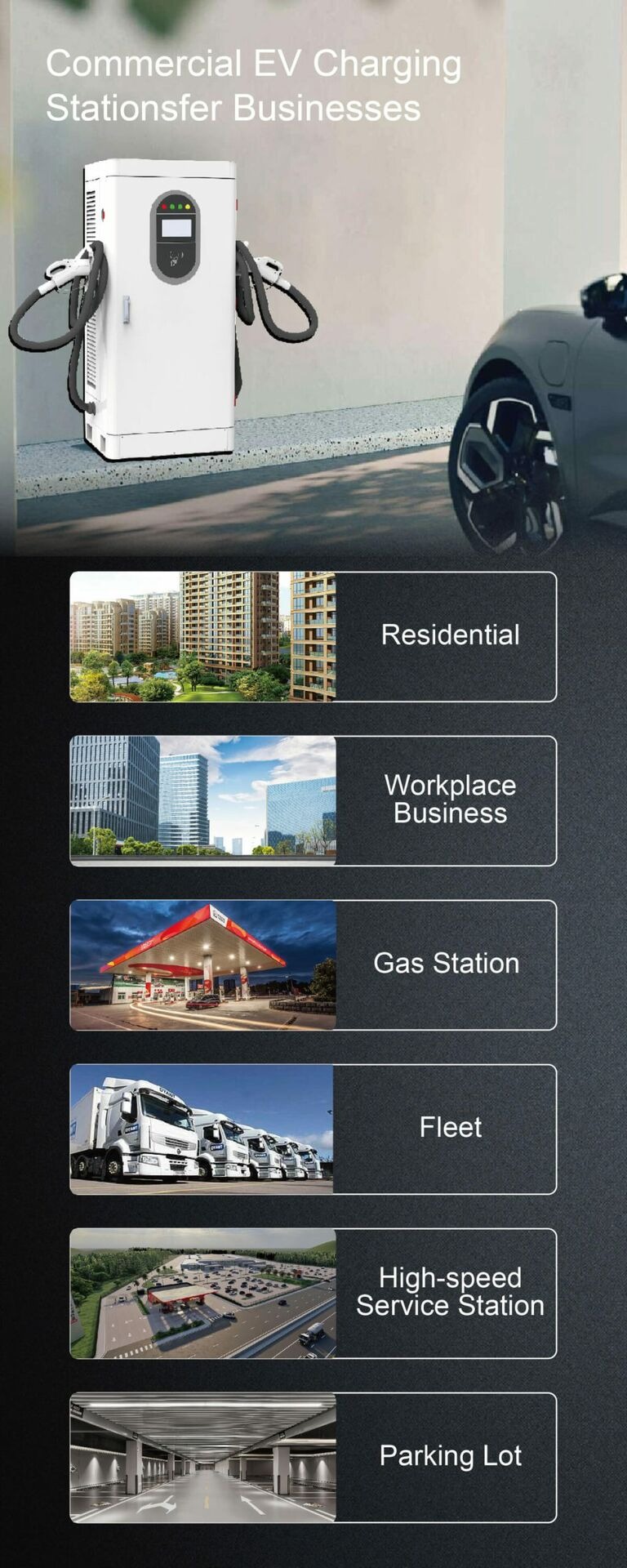 The integrated DC EV charging station is suitable for: